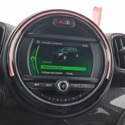 Detské poistky okná/ dvere, El.sklopné zrkadlá, Naklápanie spätného zrkadla pri cúvaní, Automatické svietenie, Predné a zadné LED svetlomety, Adaptívne svetlomety, Dosvetlovanie odchodu/ príchodu, Tripling, Nastaviteľný volant, Limiter, Slovenské menu, hlasové ovládanie entertainmentu v Angličtine, USB/ AUX/ BT- audio vstup, Optický parkovací systém, MINI Connected, Výstražný protikolízny systém, Výstraha pri prekročení rýchlosti, Programovateľná nezávislá ventilácia, Výstraha pred vstupom chodcov do dráhy vozidla, MINI Country Timer, Personalizácia vozidla ( 3x vodič + hosť), Displej zobrazenia prenosu sily, e- Manuál, El.ručná brzda, Interiér v kombinácii textil- koža, Výškovo nastaviteľné sedadlá, Nastaviteľná dĺžka sedákov, 2x USB charge, Ochranná vanička kufra, Dvojité dno kufra, 2.rada sedadiel polohovateľná/ sklopná do roviny, Originál 17" hliníkové disky, Chrómované olemovanie predných a zadných svetlometov, 3x Isofix, Aktívne ambientné LED orámovanie hl.displeja, Zobrazovanie rýchlostných limitov, TMC- dopravné hlásenia