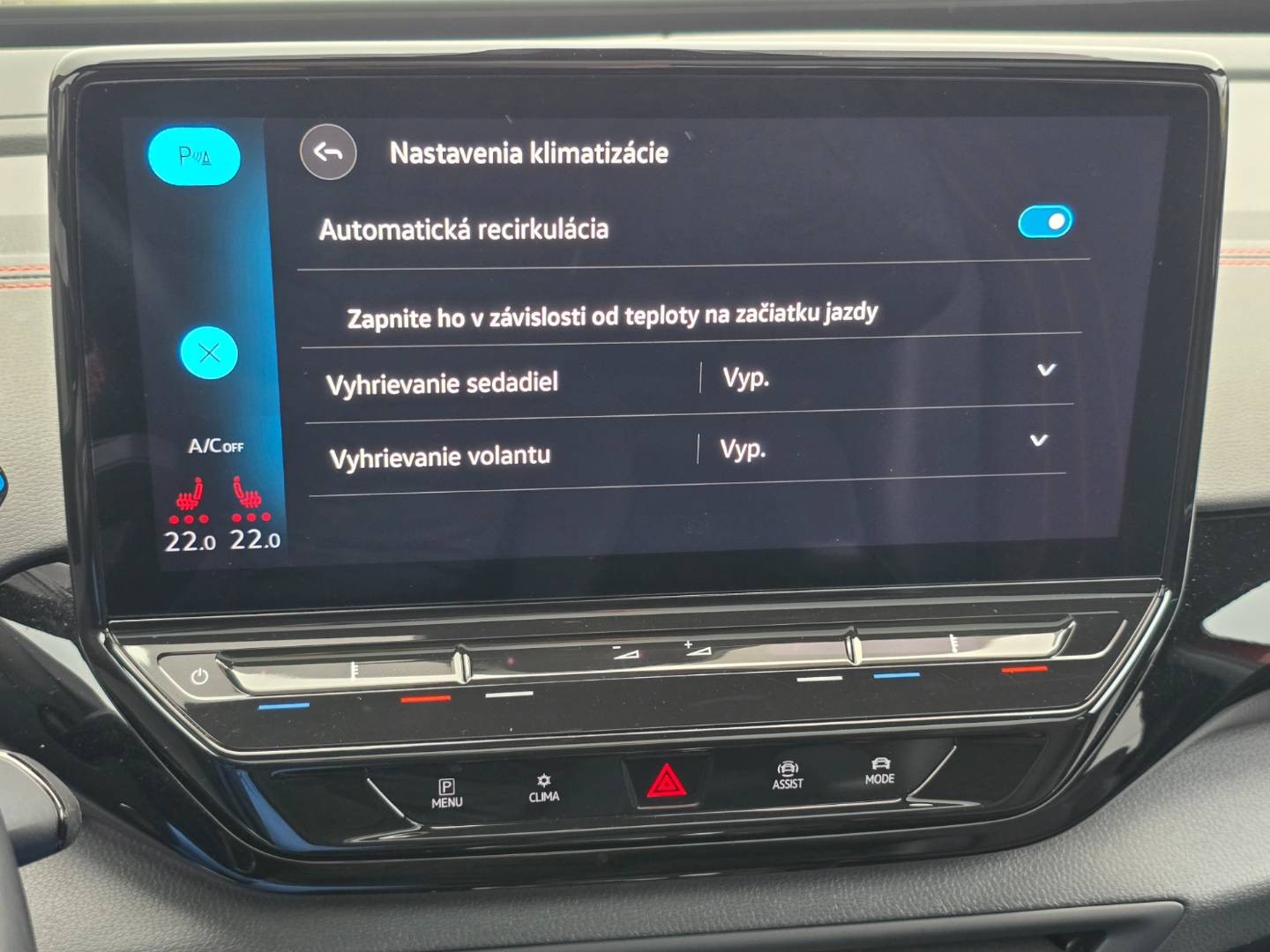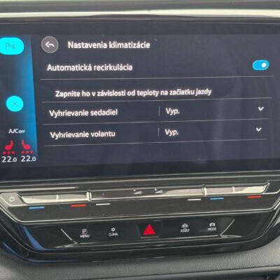 VÝBAVA VOZIDLA: -Nádherná príplatková Červená perleťová farba -Skoro maximálná výbava -HUD- Head up display -Panoramatická strecha -Ťažné zariadenie el.sklopné -Prídavné tepelné čerpadlo -SOUNDSYSTEM -priplatková hudba -WEBASTO- NEZÁVISLÉ KÚRENIE -Vyhrievané čelné sklo -360 CUVACIA KAMERA -Virtual cocpit -Príplatkové R20 hliníkové disky -Nastavitelný PODVOZOK -Príplatkový športový paket GTX -DETERMICKÉ OKNÁ -VIRTUAL COCPIT S NAJVAČŠOU OBRAZOVKOU A OVLADANÍM GESTAMI -VYHRIEVANÉ PREDNÉ SEDAČKY -VYHRIEVANÝ VOLANT -MRTVY UHOL, LANE ASSIST, ASSIT VYPARKOVANIA, PARK PILOT -3 zónová automatická klimatizácia -AMBIENTNÉ OSV. INTERIERU S MOŽNOSŤOU ZMENY FARBY -BEZDRÔTOVÝ APPLE CAR PLAY ANDROID AUTO -Bezdrôtové nabíjanie zariadenia -FULL LED MATRIX predné svetlomety s automatickým natáčaním do zákruty a vyrezávaním, -Príplatkové adaptívné svetlá -Automatické diaľkové svetlá -Elektrický kufor -Limiter, -Slovenské menu, 2xSD karta/AUX/W-Lan/USB -BT-audio vstup, MirrorLink, Car play... -ESC Sport -Rozpoznávanie únavy vodiča, Funkcia brzdy pri posune -Čítanie dopravných značiek a maximálnej povolenej rýchlosti -Výškovo nastaviteľné sedadlá