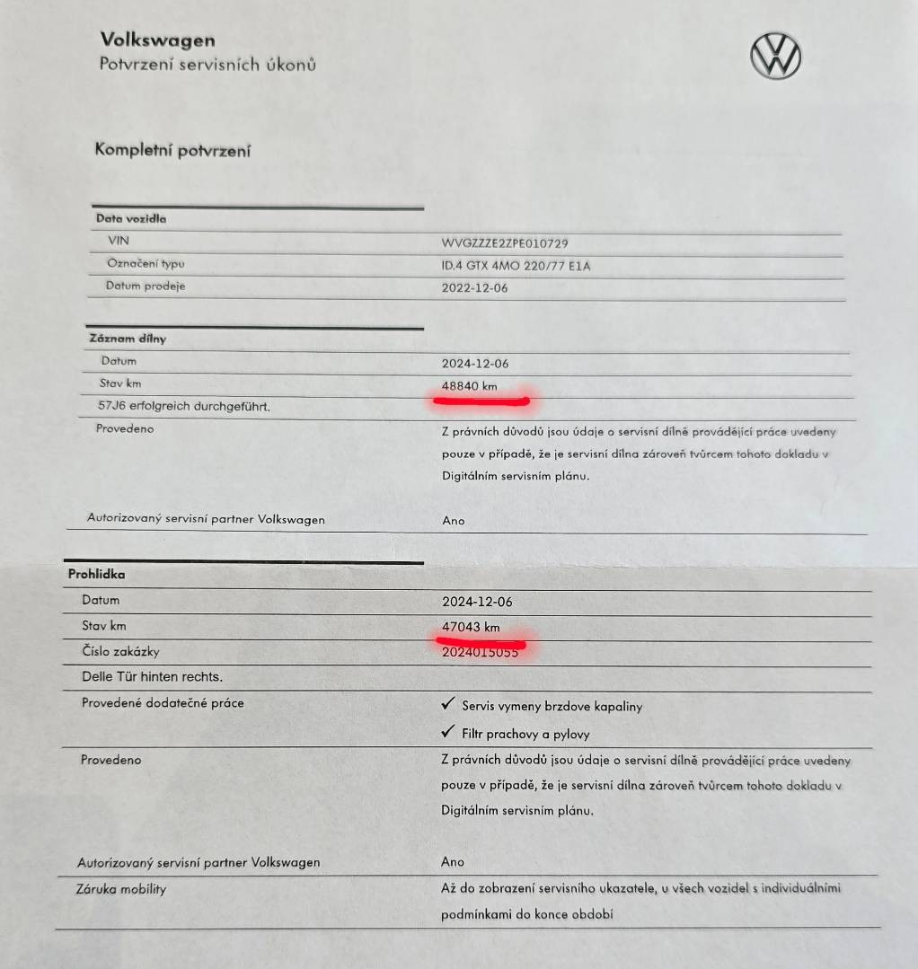 Posledný servis pri 47.000 km / Ďalší servis a prehliadka za 250 dní…
